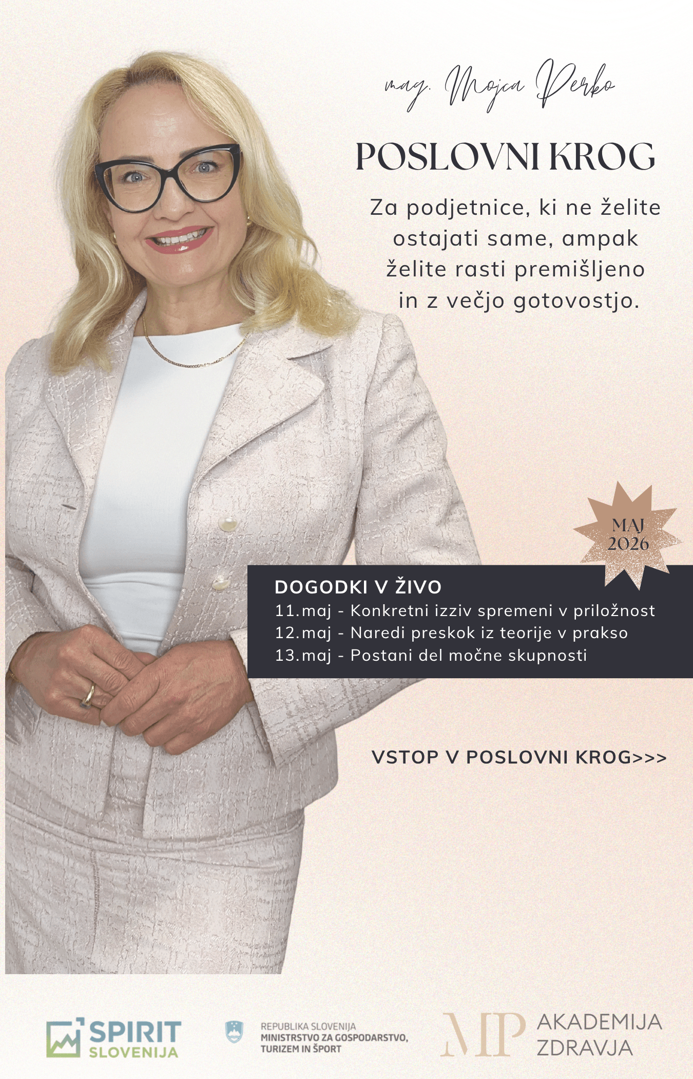 Če veš, da potrebuješ več jasnosti, bolj suverene odločitve, podporo in konkretne premike v svojem podjetju, potem je to okolje pravo zate.